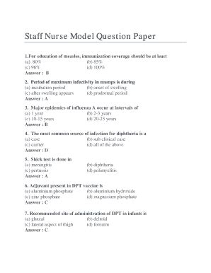 staff nurse model question paper